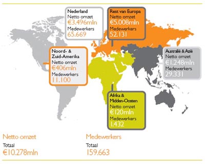 Omzet en medewerkers van TNT wereldwijd. Overgenomen uit het jaarverslag over 2009