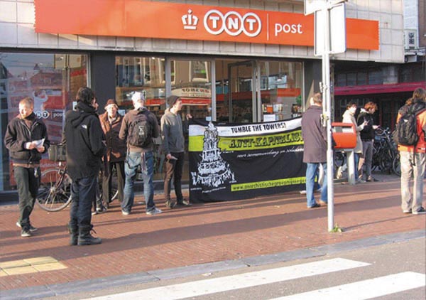 In Nijmegen deelde een Vrije Bondsgroep flyers uit bij een TNT postkantoor. 7
