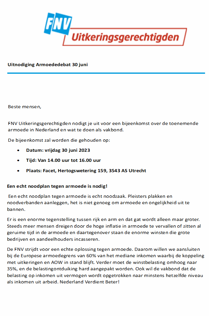We nodigen je uit voor een bijeenkomst over de toenemende armoede in Nederland en wat te doen als vakbond.